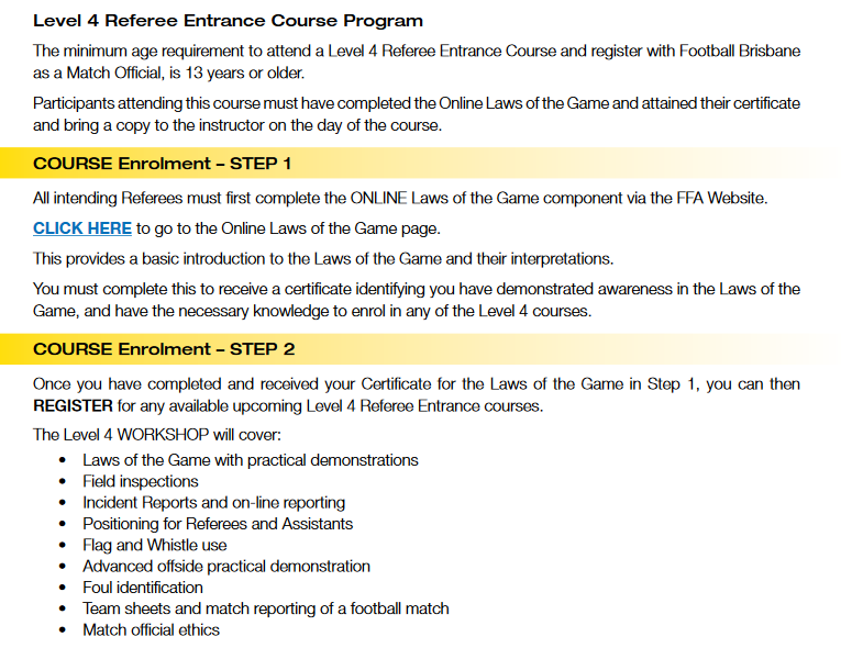 If you're keen to earn some money and would like to become a Football Referee, there is a course this weekend being run by Football Brisbane at Capalaba FC.