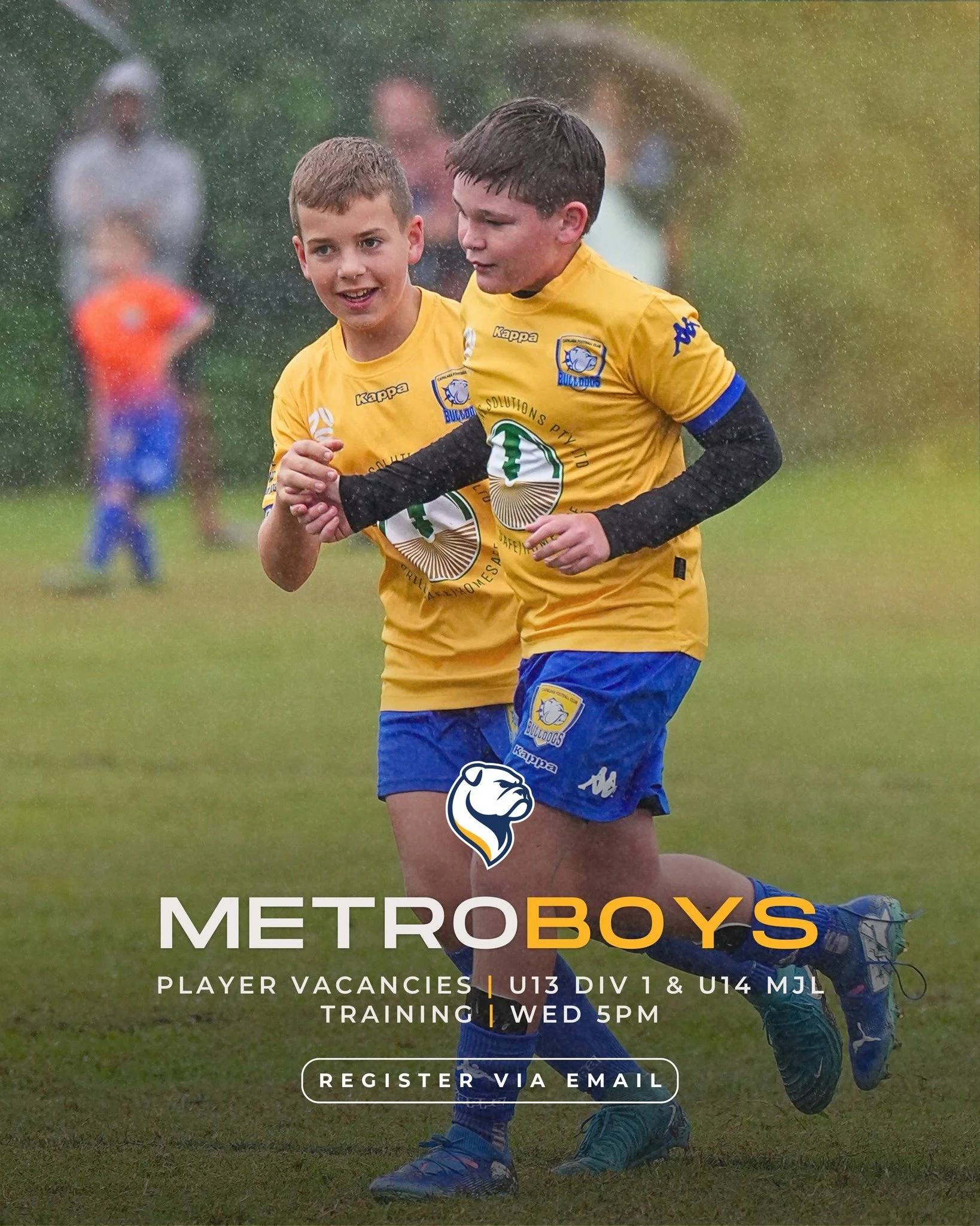 Limited vacancies still exist in our Metro Boys U13 DIV 1 & U14 MJL squads for season 2026.